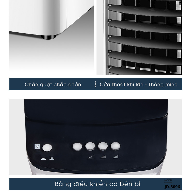 - Quạt hơi nước với thiết kế thêm màng lọc bụi, quạt điều hòa giúp khử mùi, lọc sạch bụi bẩn, diệt khuẩn không khí trong lành, sạch sẽ