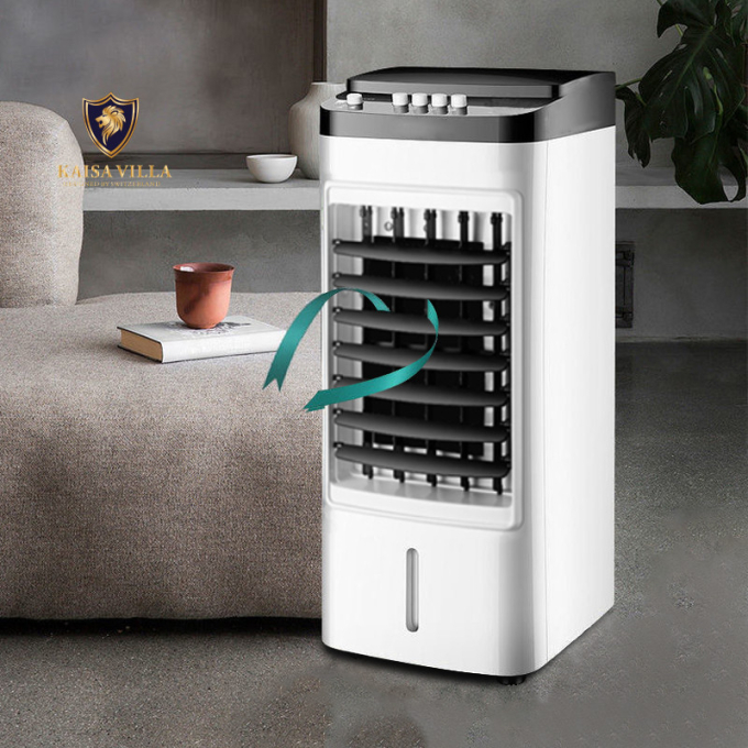 - Quạt điều hòa hơi nước, quạt hơi nước Kaisa Villa công suất 65w kích cỡ gọn nhẹ. Bạn cũng không cần tạo một căn phòng kín để sử dụng quạt điều hòa hiệu quả như với máy lạnh, một căn phòng bình thường hay ngoài trời đều có thể dùng quạt để làm mát