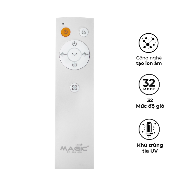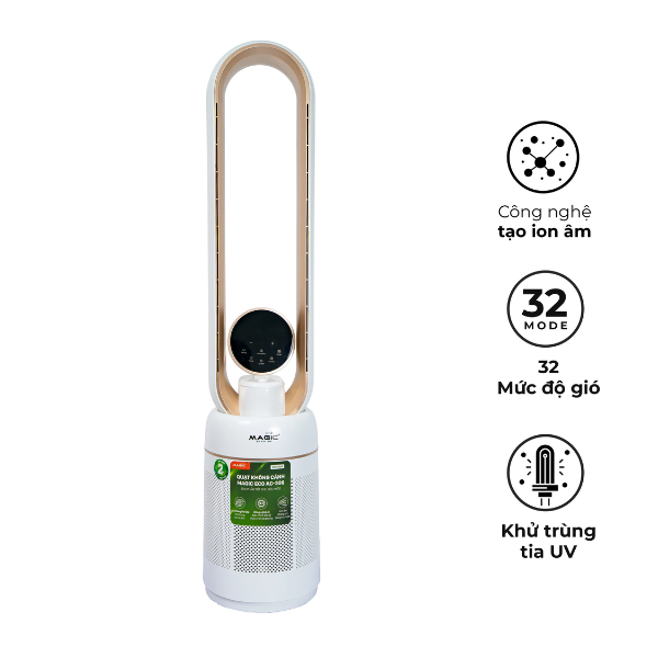 Magic Eco AC-306 được trang bị điều khiển từ xa, giúp bật/tắt và thay đổi tốc độ gió một cách tiện lợi mà không cần di chuyển gần quạt. Thiết kế không cánh hiện đại, kiểu dáng sang trọng, phù hợp đặt phòng khách, phòng ngủ hoặc văn phòng.