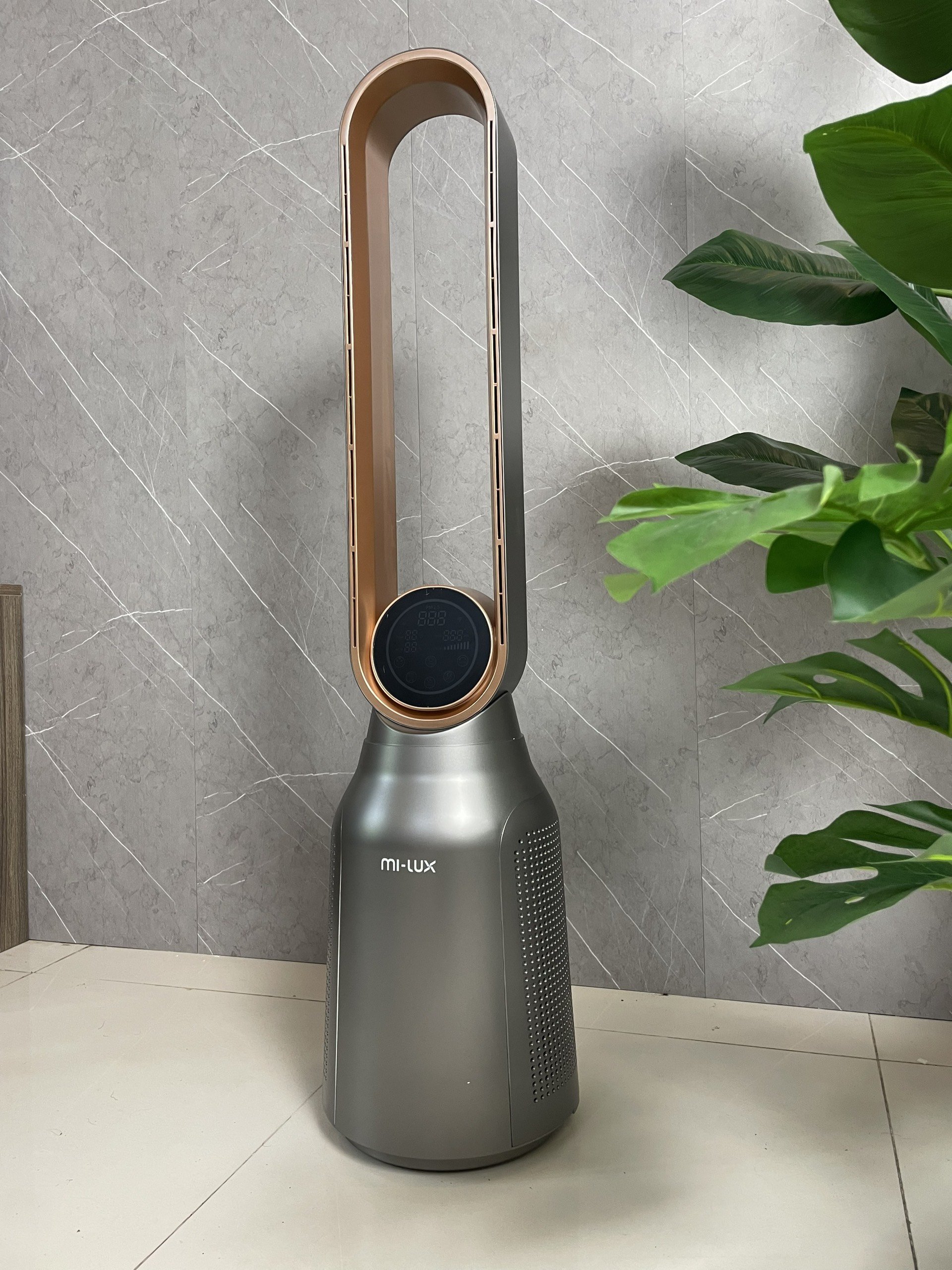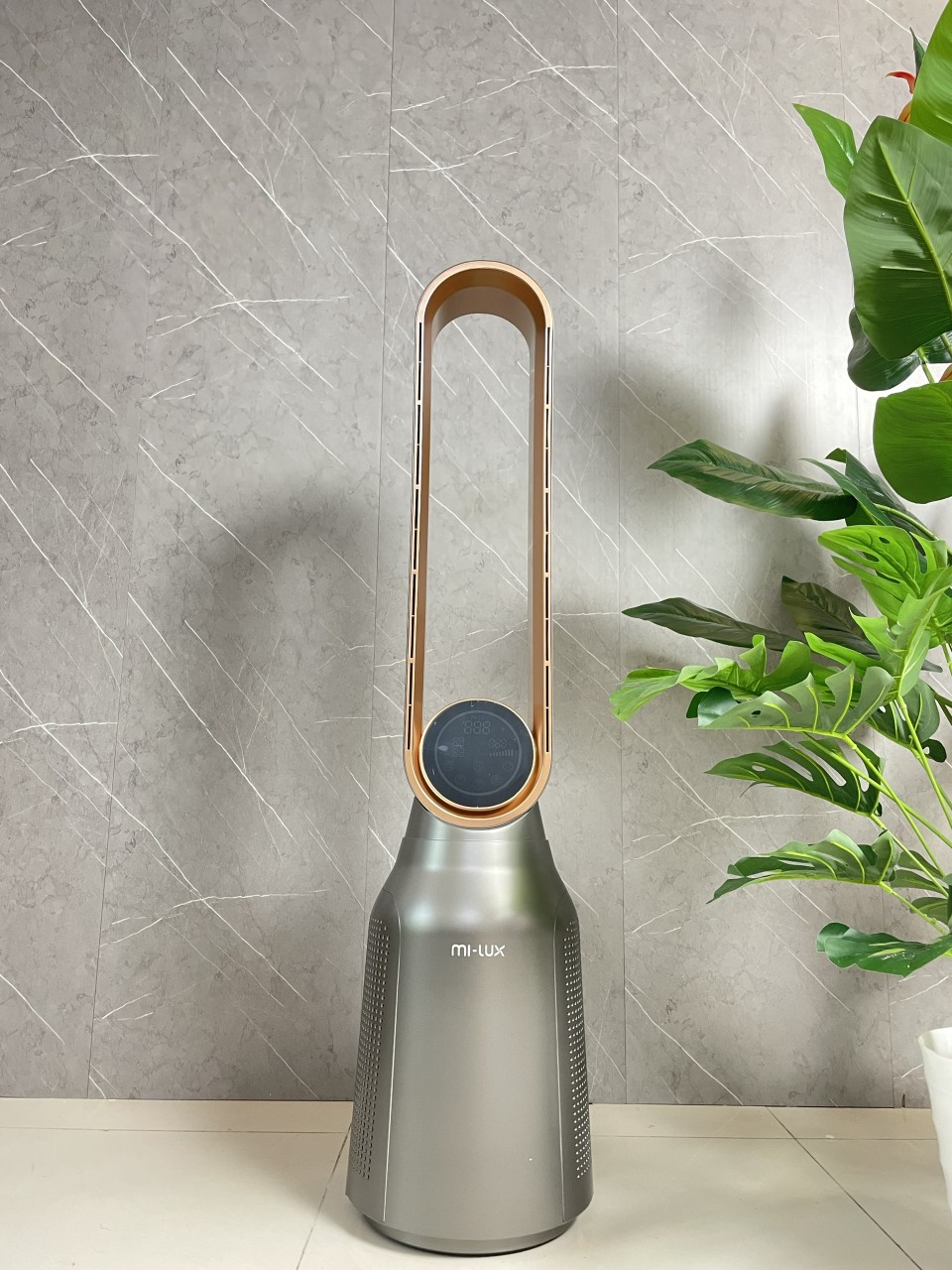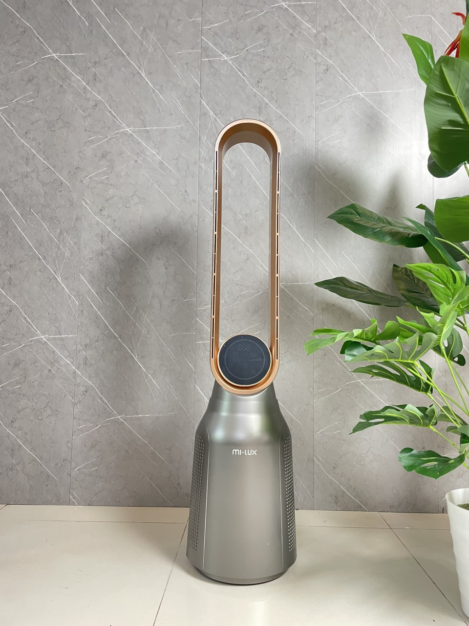 Mi-Lux Đồ gia dụng thông minh cao cấp cho ra mắt sản phẩm Quạt Không Cánh, Máy lọc không khí Mi-lux A4 Pro Gold chamgne color, Khử mùi ion âm, Đèn UV diệt khuẩn, cảnh báo chât lượng không khí–Model 2024, Hàng chính hãng, Bảo hành 24 tháng với nhiều tính năng đặc biệt giúp người dùng trài nhiệm sản phẩm vượt trội hơn so với các sản phẩm trên thị trường bời những tính năng: Quạt không cánh, Lọc không bụi mịn 2.5pm, đèn led thông báo chất lượng không khí, màng lọc carbon cao cấp, tạo ion khử mùi, đèn uv diệt khuẩn đem lại luồng không khí trong lành bảo vệ an toàn tới sức khoẻ của bạn và gia đình.