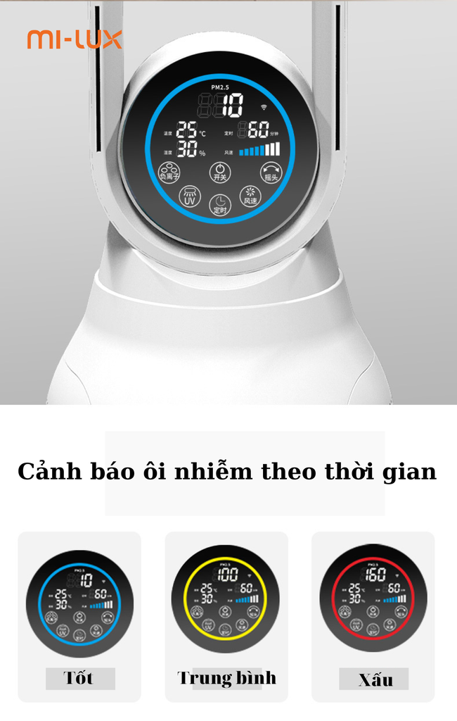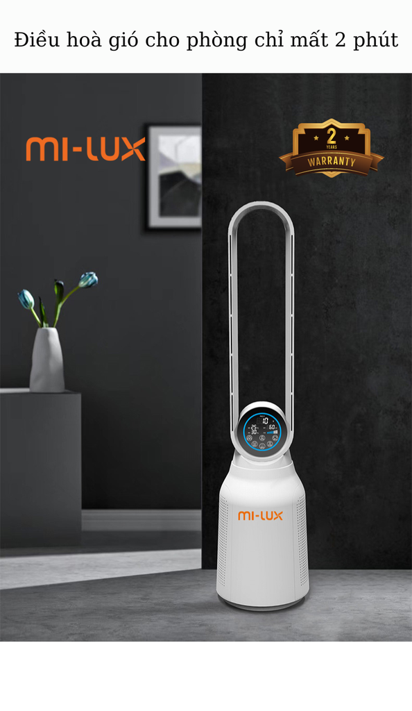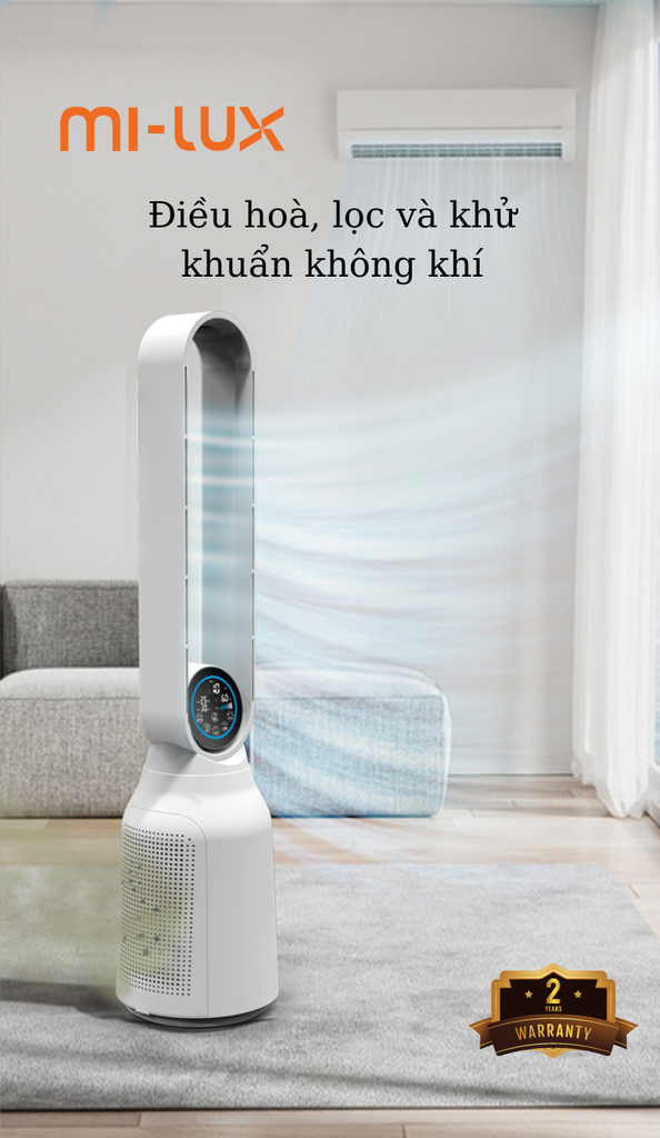 Mi-Lux Đồ gia dụng thông minh cao cấp cho ra mắt sản phẩm Quạt không cánh Mi-Lux A4 Pro với nhiều tính năng đặc biệt giúp người dùng trài nhiệm sản phẩm vượt trội hơn so với các sản phẩm trên thị trường bời những tính năng: Quạt không cánh, Lọc không bụi mịn 2.5pm, đèn led thông báo chất lượng không khí, màng lọc carbon cao cấp, tạo ion khử mùi, đèn uv diệt khuẩn đem lại luồng không khí trong lành bảo vệ an toàn tới sức khoẻ của bạn và gia đình.
