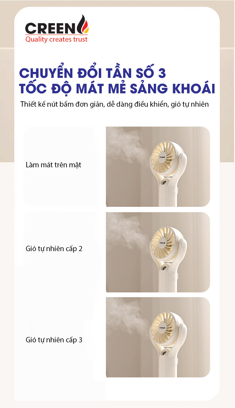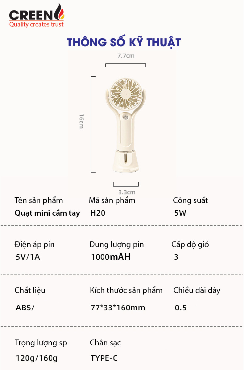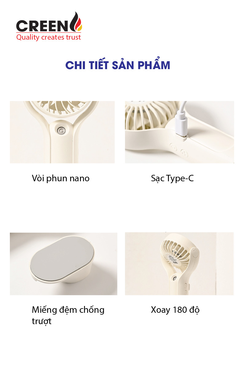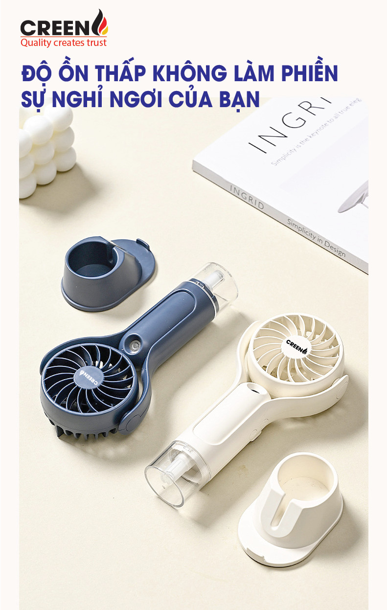 Quạt phun sương mini cầm tay Creen H20, sạc nhanh pin 1000mAH 3 cấp độ gió