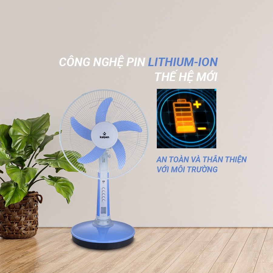 Thời gian sử dụng của Quạt Sạc Tích Điện Kalpen có thể lên tới 8 tiếng đồng hồ khi sử dụng công suất thấp (Tốc đô số 1), 3 đến 5 tiếng đồng hồ khi sử dụng công suất cao (Tốc độ số 3).