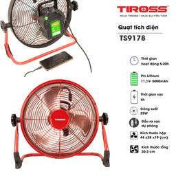Một trong những ưu điểm lớn nhất của quạt sạc Tiross TS9179 chính là thời gian sử dụng lâu dài nhờ dung lượng pin 5.000mAh. Cụ thể: