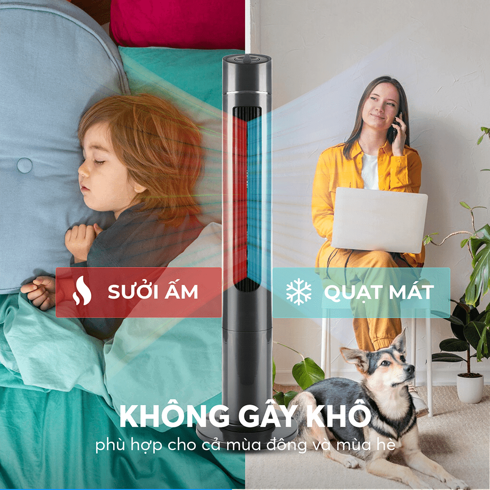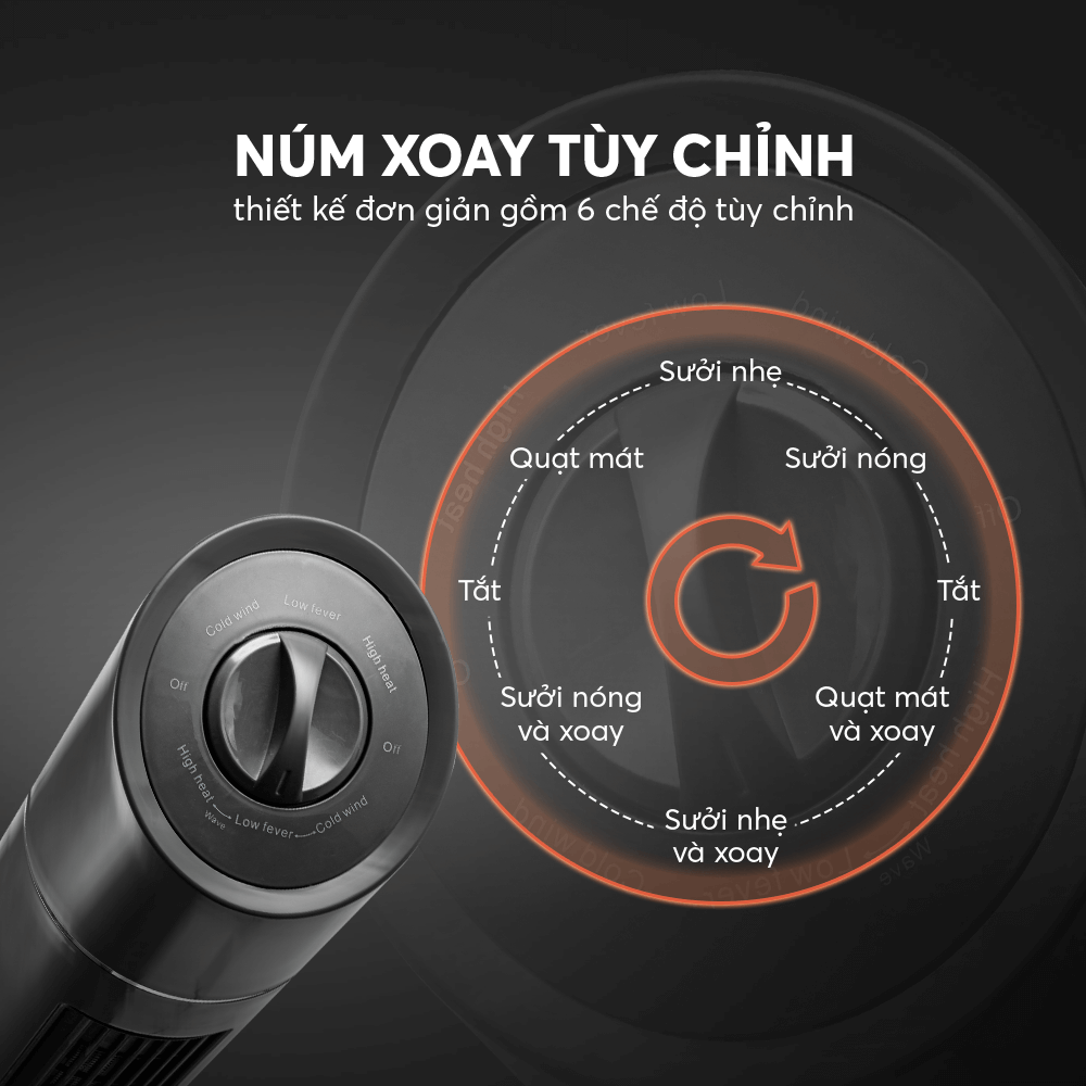 – LÀM ẤM NHANH và LINH HOẠT: Sản phẩm có 2 chế độ sưởi tương ứng với 2 mức công suất 1000W và 2000W để bạn lựa chọn tùy theo nhu cầu sưởi ấm. Ngoài ra, người dùng cũng có thể chọn quay đảo chiều liên tục để hơi ấm được tỏa đều khắp phòng, phù hợp ở những không gian rộng hoặc nhiều người.