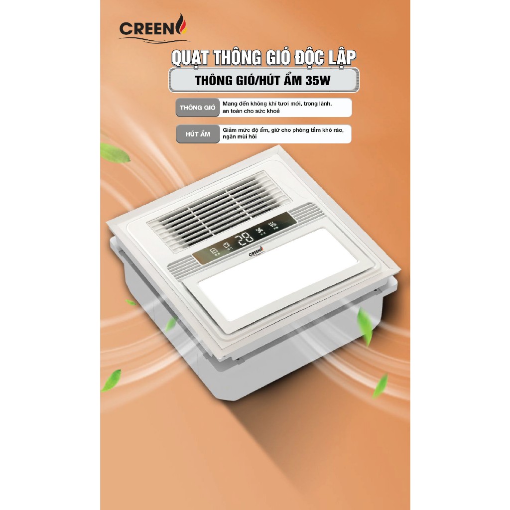 Creen CR-SMH636 dùng để chiếu sáng, sưởi ấm, thông gió/hút ẩm, làm khô/quạt mát.