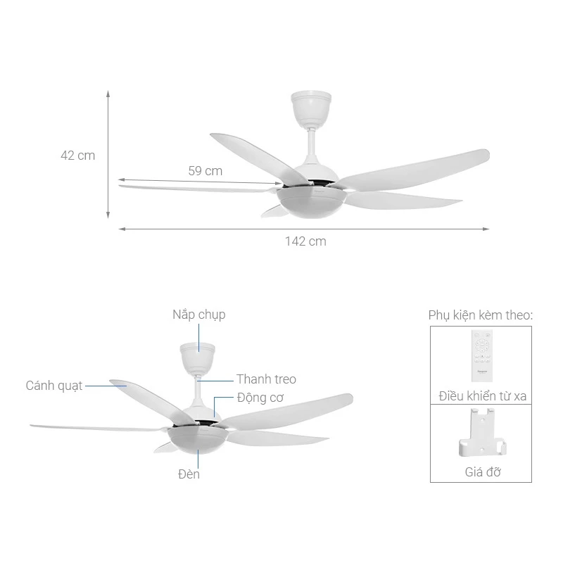 - Đường kính cánh 142 cm
