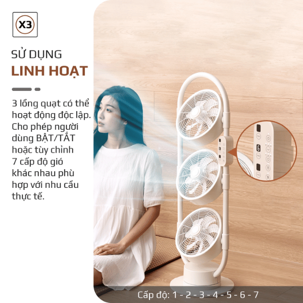 Trang bị động cơ DC cao cấp với công suất mạnh mẽ nhưng vận hành êm ái, giảm thiểu tiếng ồn tối đa, phù hợp ngay cả trong giấc ngủ.