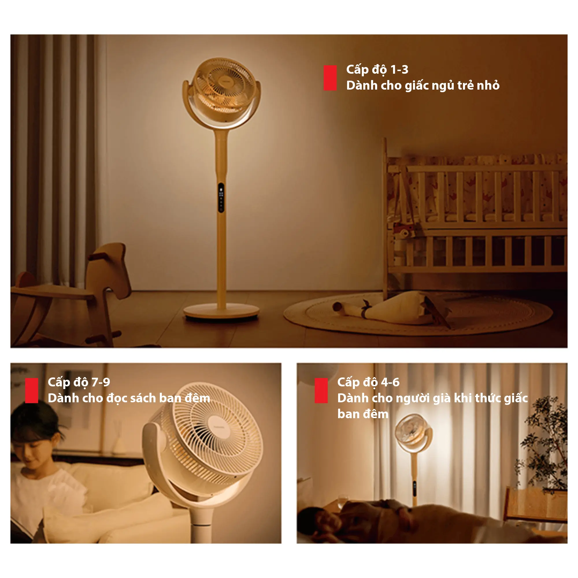 Người dùng có thể điều chỉnh nhiều chế độ gió phù hợp nhu cầu, kết hợp chức năng hẹn giờ tắt lên đến 9 tiếng. Quạt còn được tích hợp đèn ngủ với 9 mức sáng khác nhau, mang đến giấc ngủ thoải mái. Remote điều khiển từ xa giúp thao tác dễ dàng, không cần di chuyển nhiều.