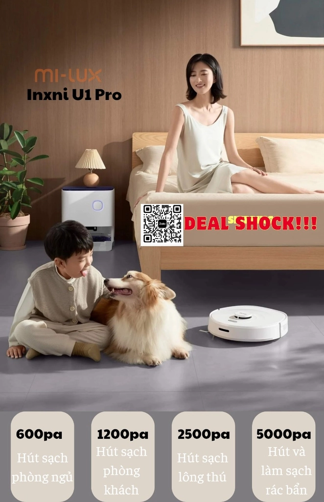 Robot hút bụi lau nhà MILUX INXNI U1 PRO có thể nói là cuộc cách mạng đối với robot hút bụi lau nhà truyền thống, Lực hút 5000pa Pin 5000mAh Tự động giặt Giẻ Phiên Bản Bản Quốc Tế Giọng nói Tiếng Việt. Bình nước trên thân máy 400ml giúp robot làm việc ở diện tích rộng mà không cần quay về giặt giẻ, đặc biệt là chức năng lau sàn nhà 360 độ giúp robot trở nên hoàn hảo, thậm chí bổ sung tính năng Khử khuẩn OZONE DIệt 99.9% vi Khuẩn Có Hại