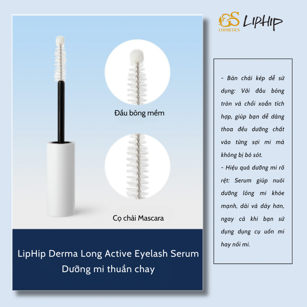 Serum Dưỡng Mi LipHip Derma Long Active – Công Thức Thuần Chay, Giúp Mi Dài, Cong Và Chắc Khỏe.