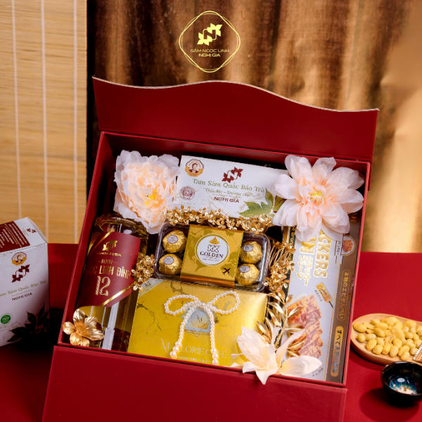 Bên trong hộp quà đỏ sang trọng mang phong vị Tết Việt là sự kết hợp tinh tế giữa những sản phẩm cao cấp – mỗi món đều có câu chuyện, giá trị và công dụng riêng.