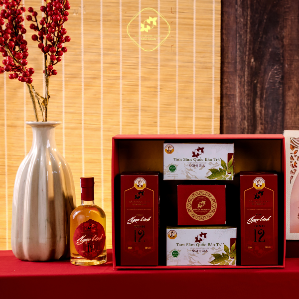 Set quà SNG04 là sự chắt lọc tinh túy từ chính nguồn nguyên liệu ấy, kết hợp cùng các sản phẩm bổ dưỡng truyền thống như yến và trà tam sâm. Mỗi thành phần trong hộp quà đều mang theo hành trình 5 chuẩn mực vàng: Trồng – Chăm sóc – Thu hoạch – Chế biến – Thành phẩm, được kiểm soát nghiêm ngặt để giữ trọn vẹn 3 giá trị cốt lõi: Nguyên bản, Tinh túy, Chuẩn dược liệu quốc gia.