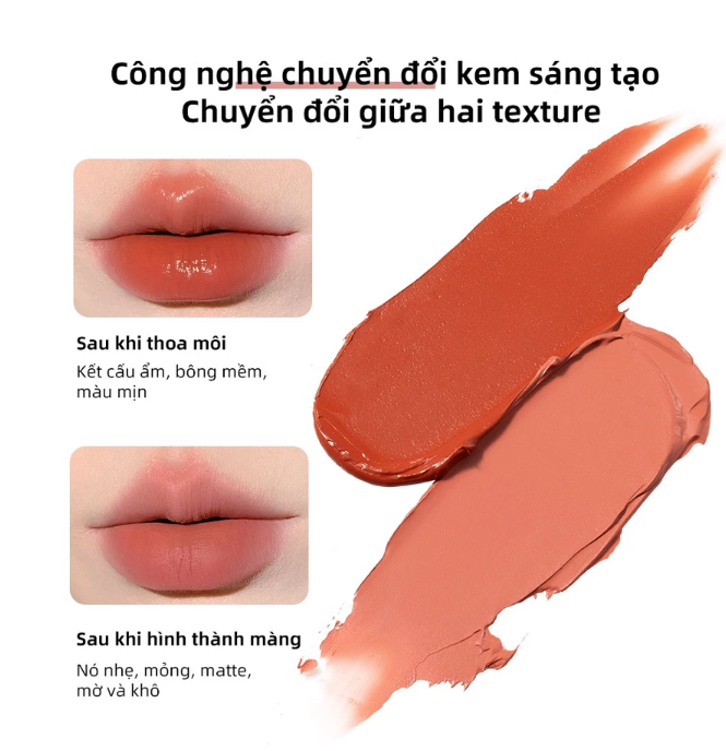 Cách dùng: Lắc nhẹ, tán son từ tâm môi, chờ 60 giây để khô lì. Layer 2 lớp tăng độ đậm. Hàng chính hãng Hàn Quốc, tem niêm phong đầy đủ, đổi trả 1:1 trong 7 ngày nếu lỗi.
