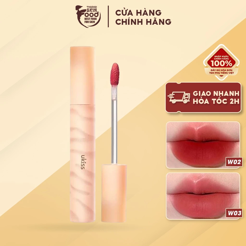 Son Tint Ukiss Ginger Cat Trek 3.3g là màu cam đất hot trend, giúp đôi môi thêm ấm áp và cuốn hút ngay từ lần thoa đầu. Kết cấu tint lỏng thấm nhanh, chuyển lì mịn sau 30 giây mà vẫn giữ độ ẩm tự nhiên.