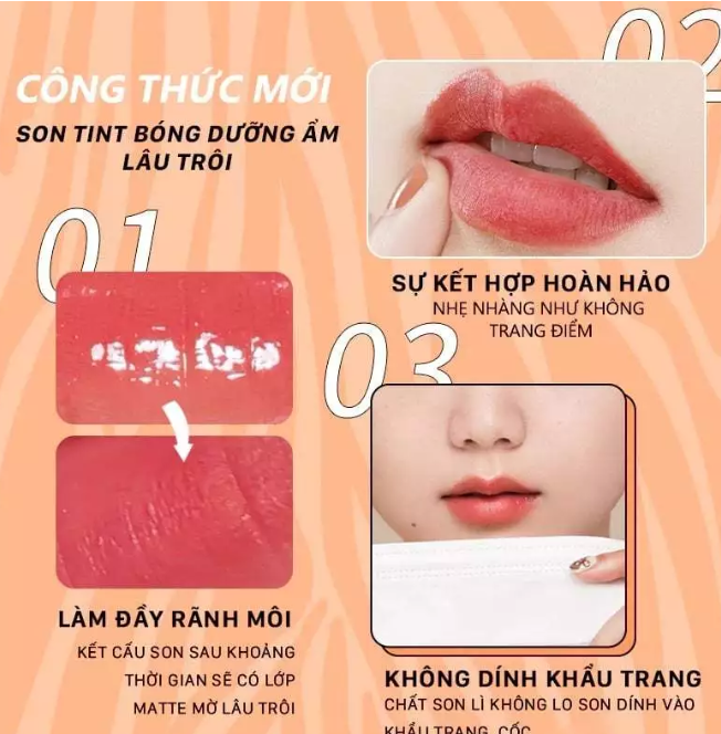 Cách dùng: Lắc nhẹ, tô từ tâm môi ra viền, chờ 30 giây để lì hoàn toàn. Layer 2 lớp tăng độ đậm. Hàng chính hãng Hàn Quốc, tem niêm phong đầy đủ, đổi trả 1:1 trong 7 ngày nếu lỗi.