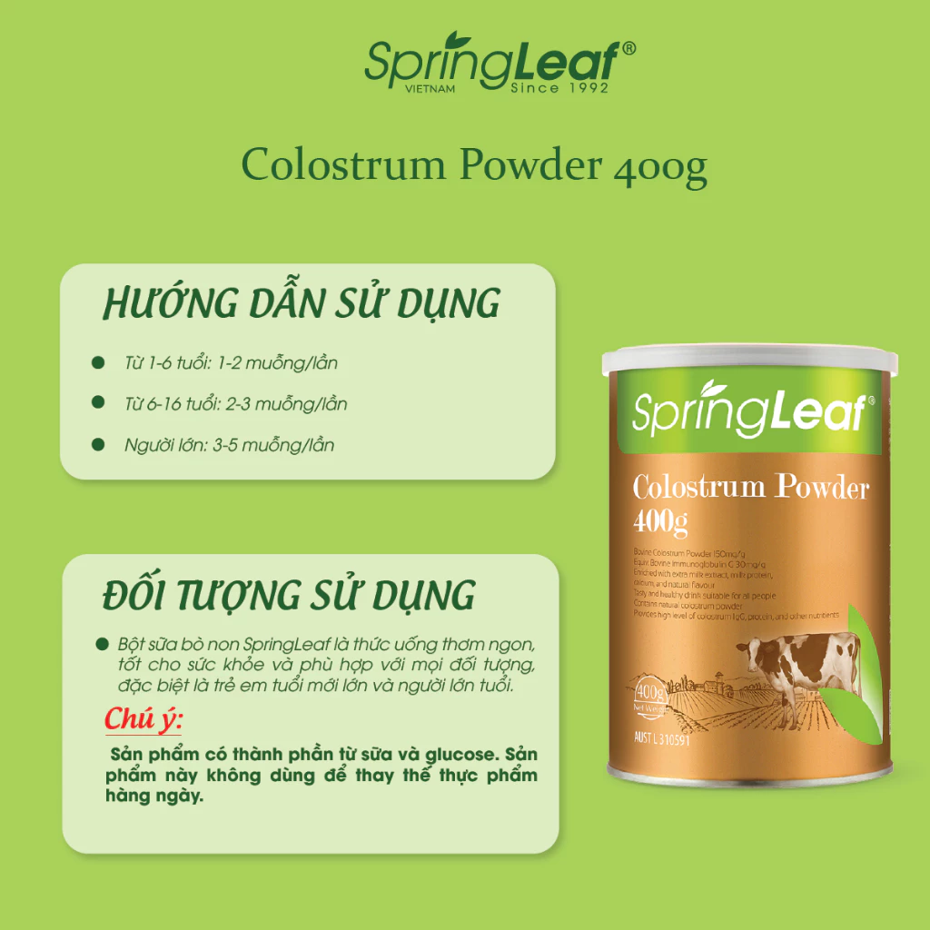Đừng bỏ lỡ cơ hội chăm sóc sức khỏe cho bạn và gia đình với Bột Sữa Bò Non SpringLeaf Colostrum IgG 3000mg 400g! Sản phẩm hiện có sẵn trên website của chúng tôi với giá ưu đãi và nhiều chương trình khuyến mãi hấp dẫn.