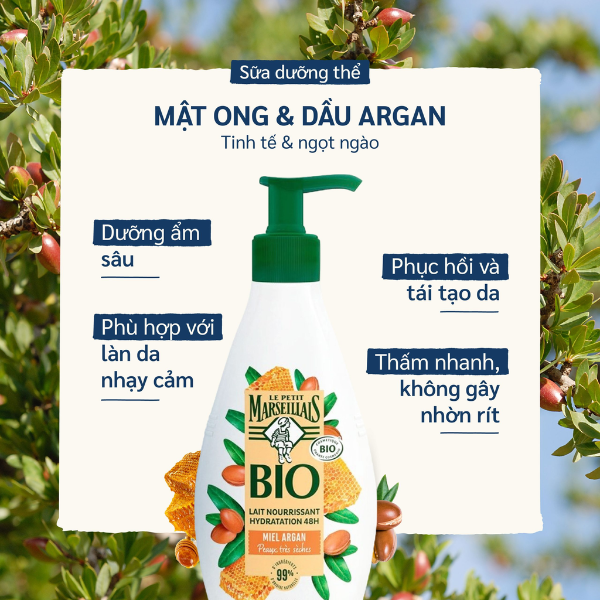 Sữa Dưỡng Thể Hữu Cơ Le Petit Marseillais 250ml là giải pháp lý tưởng để chăm sóc và bảo vệ làn da mềm mịn mỗi ngày. Công thức với mật ong hữu cơ và dầu Argan cung cấp độ ẩm chuyên sâu lên đến 48 giờ, giúp phục hồi làn da khô ráp và mang lại cảm giác mềm mại, mượt mà.