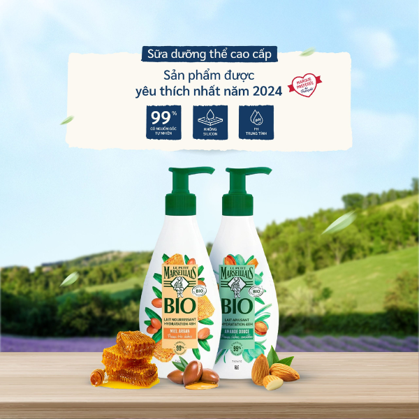 Với Le Petit Marseillais 250ml, bạn sẽ có làn da được dưỡng ẩm chuyên sâu, mềm mịn, đàn hồi tốt và luôn rạng rỡ suốt cả ngày, kết hợp trải nghiệm thư giãn từ hương thơm tự nhiên.
