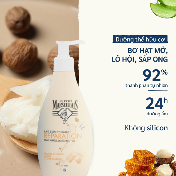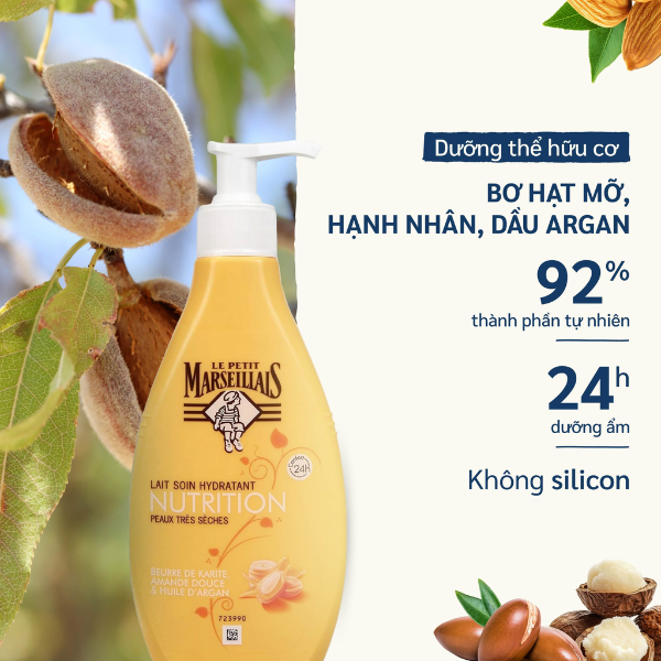 Sữa Dưỡng Thể Le Petit Marseillais 250ml là sản phẩm dưỡng ẩm lý tưởng, giúp chăm sóc làn da mềm mại và khỏe mạnh. Công thức với chiết xuất thiên nhiên và dầu thực vật cung cấp dưỡng chất nuôi dưỡng da khô, giúp phục hồi độ mịn màng và đàn hồi tự nhiên của làn da.