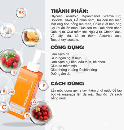 Hydracare Cleanser được bào chế từ các thành phần lành tính, thân thiện với làn da. Chiết xuất nha đam có tác dụng cấp ẩm, làm dịu và giảm kích ứng, đồng thời hỗ trợ phục hồi da sau mụn hoặc cháy nắng. Glycerin đóng vai trò là hoạt chất giữ ẩm tự nhiên, giúp da luôn mềm mịn và hạn chế tình trạng khô ráp. Acid Hyaluronic nổi bật với khả năng ngậm nước gấp nhiều lần trọng lượng, nhờ đó cấp ẩm sâu và duy trì độ đàn hồi cho da. Niacinamide, hay còn gọi là Vitamin B3, giúp cải thiện sắc tố, giảm thâm mụn, đồng thời tăng độ đàn hồi và đều màu da. Các chất làm sạch gốc amino acid loại bỏ bụi bẩn và dầu thừa nhưng vẫn dịu nhẹ, không phá vỡ lớp bảo vệ tự nhiên của da.![]()