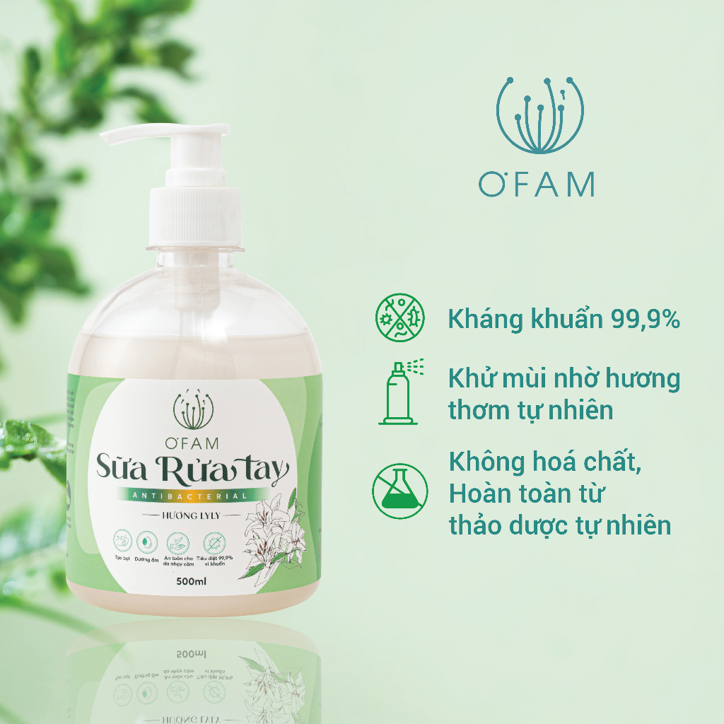 Sữa rửa tay O'Fam thể tích 50ml an toàn lành tính, dưỡng ẩm da tay và ngăn ngừa vi khuẩn