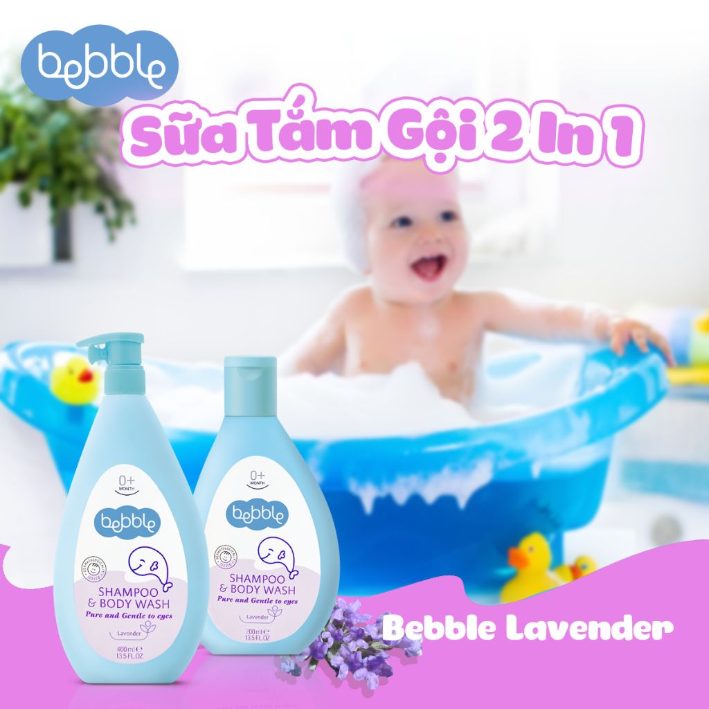 - Sữa tắm gội Bebble 200ml có thành phần chính là chiết xuất hoa oải hương (Lavender). Với tính sát trùng và kháng khuẩn tự nhiên từ chiết xuất Lavender, sữa tắm gội dễ dàng lấy đi nhanh chóng những vết bẩn và vi khuẩn trên người bé, đồng thời cung cấp lại độ ẩm tự nhiên cho da, giảm ứ nước, cho bé một làn da thơm mát và khỏe mạnh.