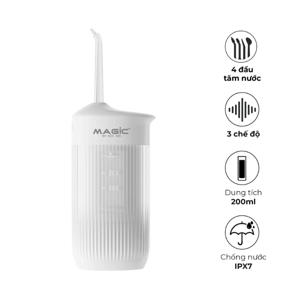Tăm nước Magic B-02 là thiết bị chăm sóc răng miệng hiện đại giúp loại bỏ mảng bám và vụn thức ăn sâu trong các kẽ răng, đặc biệt phù hợp với người mang niềng răng hoặc implant. Sản phẩm tạo áp lực nước mạnh nhưng an toàn, giúp làm sạch răng hiệu quả mà không gây đau hay kích ứng.