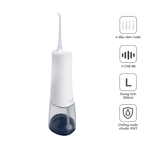 Máy sở hữu 3 chế độ phun nước linh hoạt, từ nhẹ, trung bình đến mạnh, cho phép người dùng dễ dàng điều chỉnh theo nhu cầu. Đầu phun xoay 360 độ giúp tiếp cận toàn bộ khoang miệng, đảm bảo làm sạch tối đa các kẽ răng và nướu, đồng thời tạo cảm giác dễ chịu và an toàn khi sử dụng.