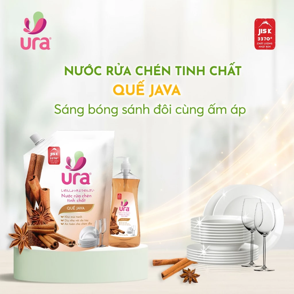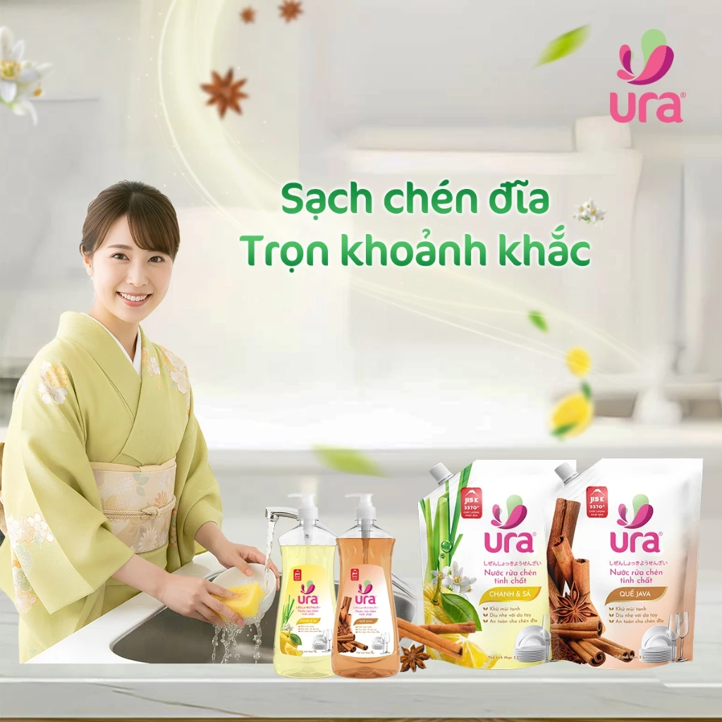 URA sử dụng các hoạt chất tẩy rửa hữu cơ giúp bóc tách các lớp dầu mỡ bám dính trên đồ nhựa, đồ sứ và inox chỉ trong một lần rửa. Bạn sẽ cảm nhận được độ sạch bong "kít kít" ngay lập tức.