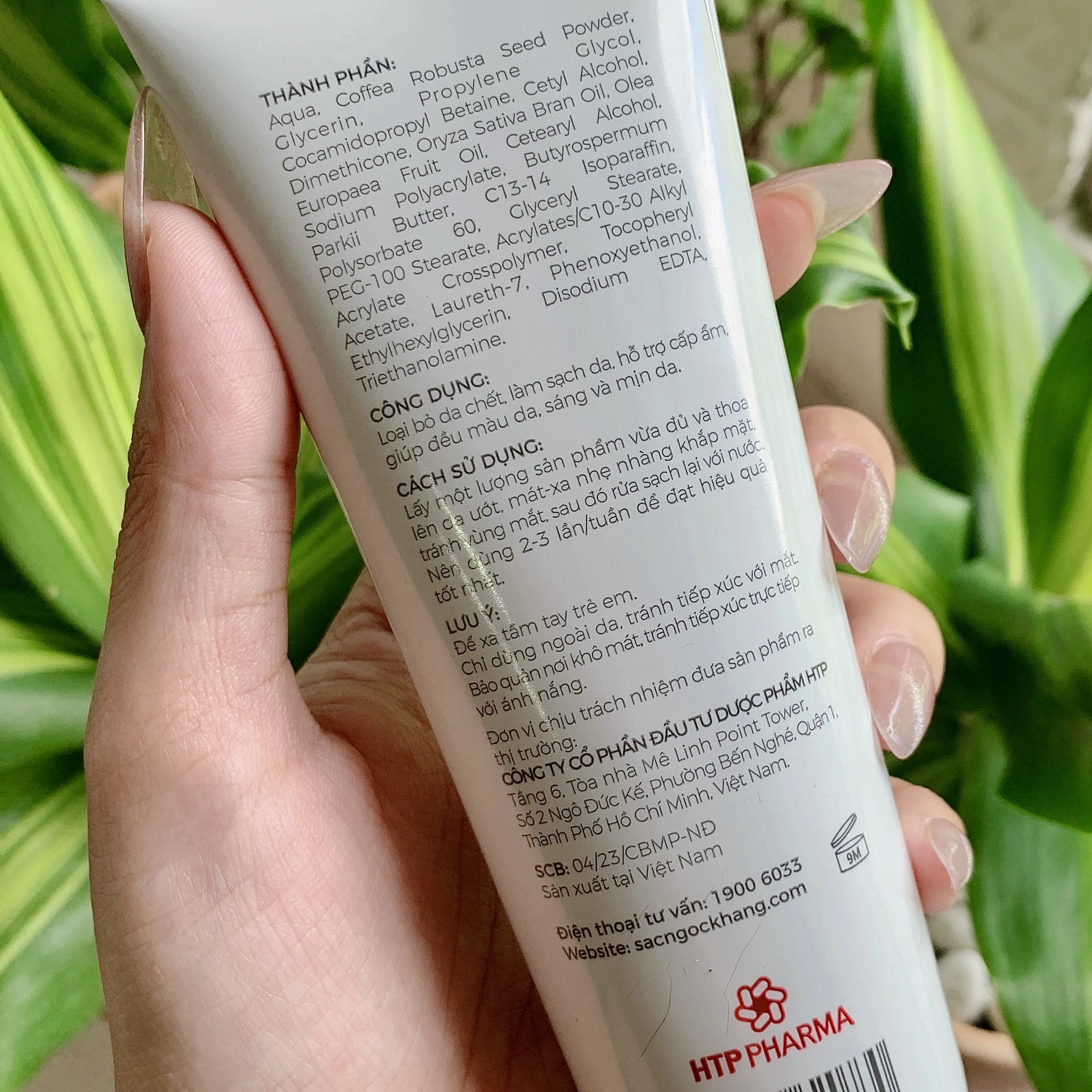 - Với công thức độc đáo chứa Hạt Cà Phê Robusta được tuyển chọn kỹ lưỡng từ vùng Tây Nguyên Việt Nam (Đắk Lắk). Hạt cà phê được xay nhuyễn đến độ mịn và kích thước đạt chuẩn giúp loại bỏ tế bào chết, thanh lọc lỗ chân lông mà không gây bào mòn da. Đặc biệt tất cả công đoạn rang xay cà phê đều được thực hiện thủ công. Điều này giúp cà phê đạt đến mùi hương và màu sắc ưng ý nhất mà không cần thêm bất cứ hương liệu hay màu nhân tạo nào.