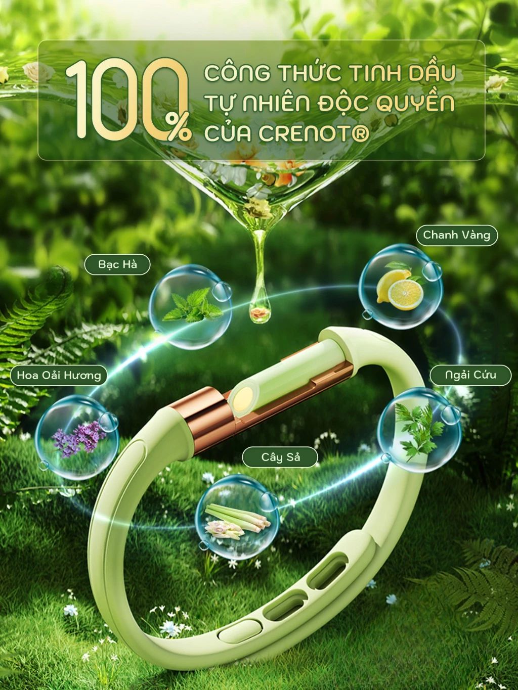 Một trong những đặc điểm nổi bật của vòng tay Crenot Buggie M2 chính là sử dụng tinh dầu chiết xuất hoàn toàn từ thiên nhiên với nguồn gốc rõ ràng. Sản phẩm KHÔNG chứa DEET - thành phần hóa học thường có trong các sản phẩm diệt muỗi và côn trùng, nhưng có thể gây kích ứng da và ảnh hưởng đến sức khỏe, đặc biệt là trẻ nhỏ và phụ nữ mang thai. Điều này giúp sản phẩm an toàn tuyệt đối cho mọi đối tượng sử dụng, bao gồm cả trẻ em và người có làn da nhạy cảm.
