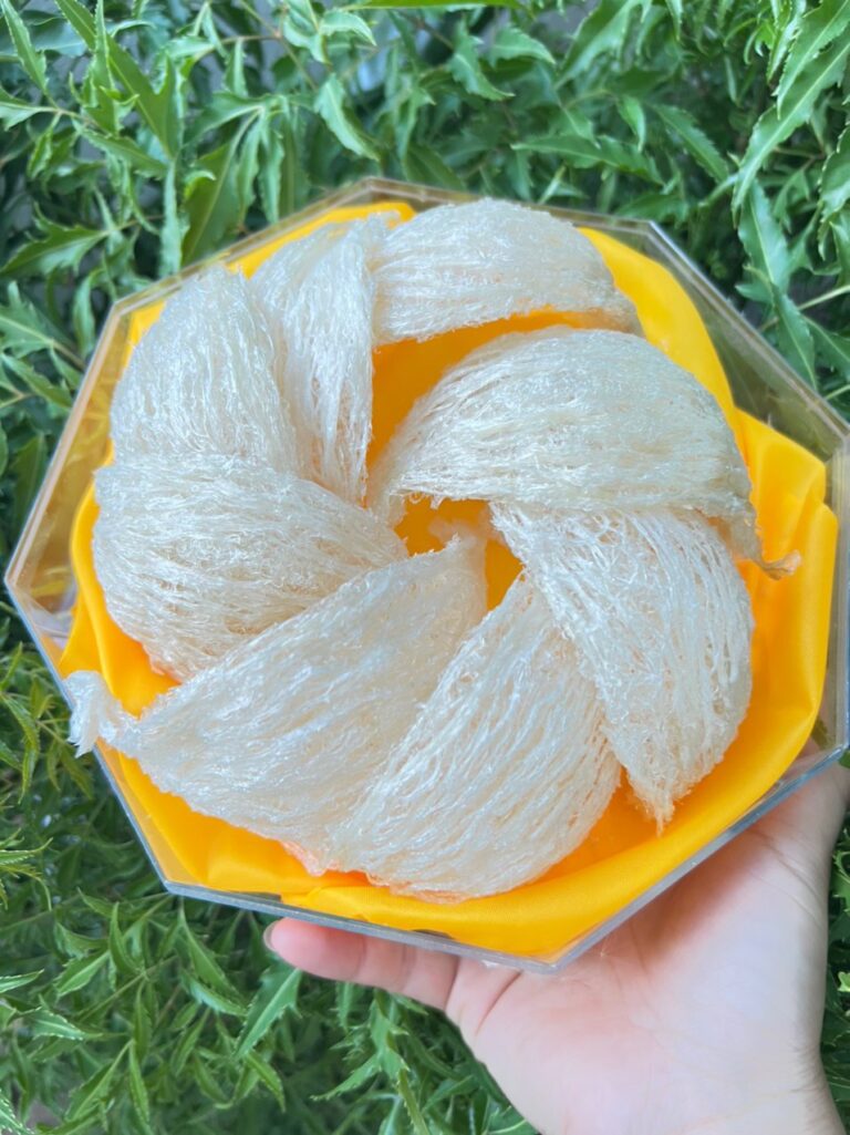 Tổ Yến Tinh Chế 100g là sản phẩm cao cấp được chế biến từ những tổ yến nguyên chất, trải qua quá trình tinh chế kỹ lưỡng, loại bỏ hoàn toàn tạp chất, lông và bụi bẩn nhưng vẫn giữ nguyên cấu trúc sợi yến, màu sắc tự nhiên và giá trị dinh dưỡng quý hiếm. Sản phẩm mang đến giải pháp chăm sóc sức khỏe toàn diện cho cả gia đình và đồng thời là món quà sang trọng, ý nghĩa trong các dịp lễ Tết, sinh nhật, mừng thọ hay tri ân đối tác. Với trọng lượng 100g, tổ yến tinh chế cung cấp đủ lượng yến để chế biến nhiều món ăn bổ dưỡng như yến chưng đường phèn, súp yến hải sản, chè yến hạt sen hay yến hầm gà, mang đến trải nghiệm thưởng thức trọn vẹn về hương vị và giá trị dinh dưỡng.![]()