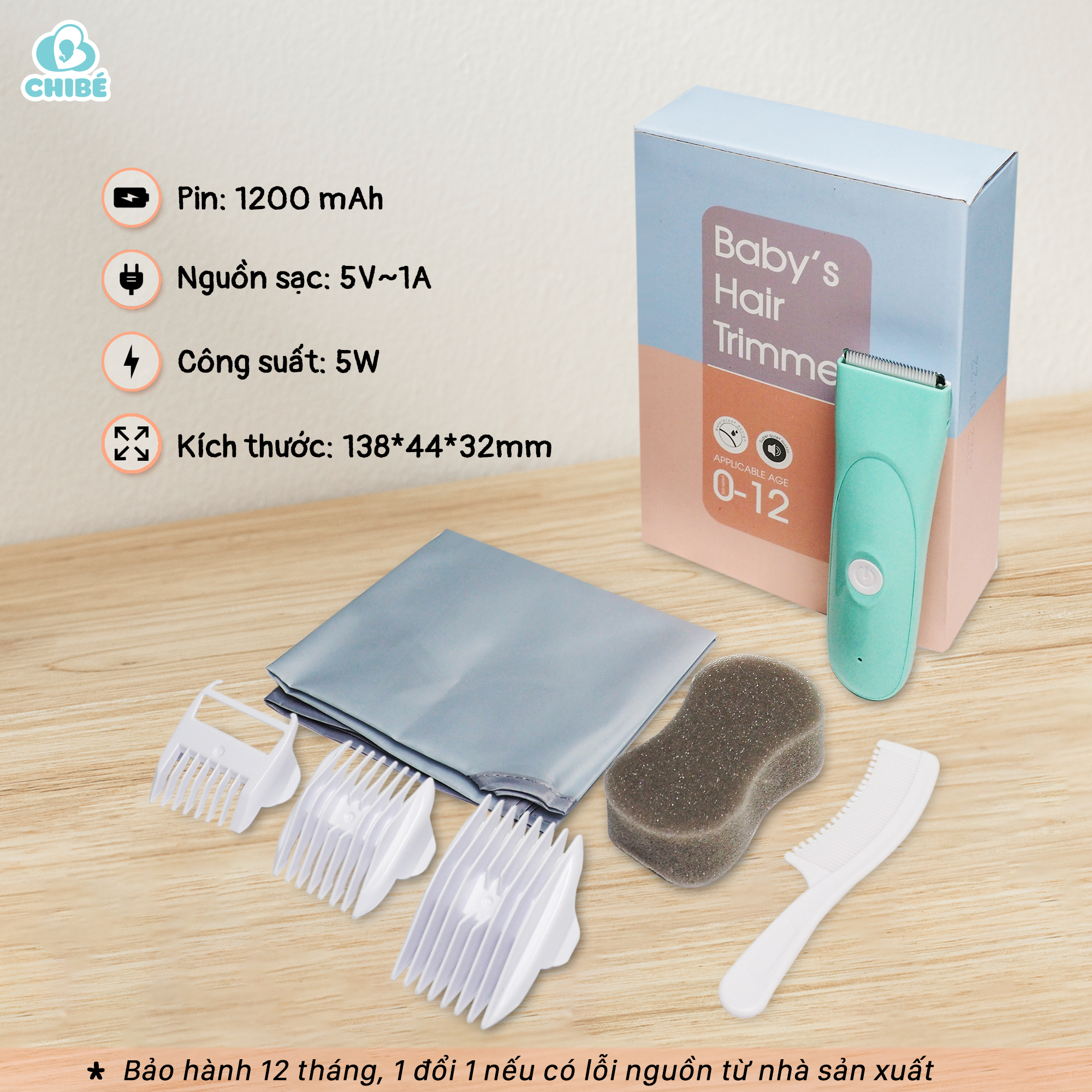 - Quy cách: 1 thân máy, 3 cữ gá, 1 cáp USB, 1 mút xốp, 1 lược, 1 lọ dầu, 1 khăn choàng