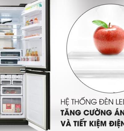 Tủ lạnh Sharp được trang bị hệ thống đèn LED tăng cường ánh sáng tạo cảm giác không gian thoáng đãng cho bạn khi sử dụng tủ lạnh.