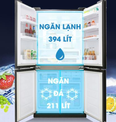 Với dung tích 605 lít, 211 lít cho ngăn đá, 394 lít cho ngăn mát cùng cách bố trí các ngăn kệ vô cùng khoa học, cho bạn thêm nhiều không gian để bảo quản thực phẩm. Sản phẩm này phù hợp cho gia đình có trên 5 thành viên sử dụng