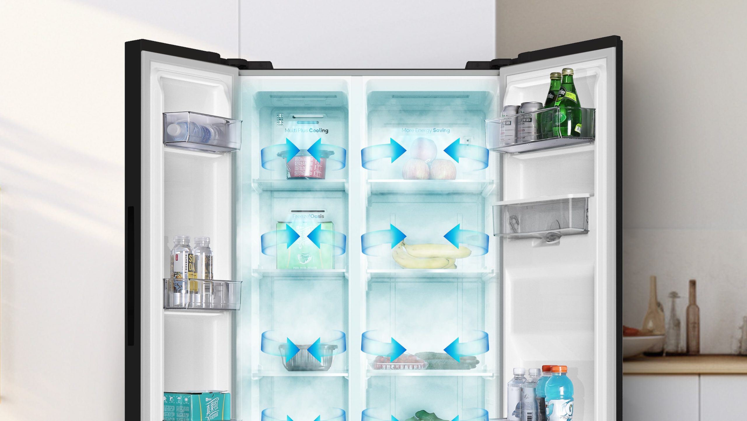 Hệ thống làm lạnh đa chiều Multi Air Flow gồm nhiều lỗ thoát khí được phân bố tại các vị trí khác nhau trong tủ lạnh. Khí lạnh lưu thông đồng đều qua các ngăn/hộc tủ, cấp lạnh tới mọi ngóc ngách và duy trì nhiệt độ đồng đều, từ đó giúp thực phẩm tươi mới và thơm ngon.