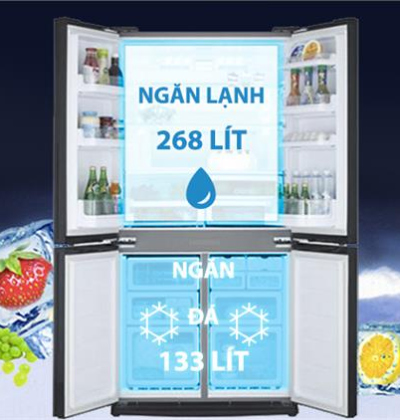 Chiếc tủ lạnh dung tích trên 400 lít này còn sử dụng hệ thống làm lạnh đa chiều, có khả năng phân bổ và tỏa đều luồng khí lạnh bên trong mỗi ngăn chứa, giúp làm lạnh thực phẩm toàn diện cũng như giảm thiểu tình trạng ôi thiu.