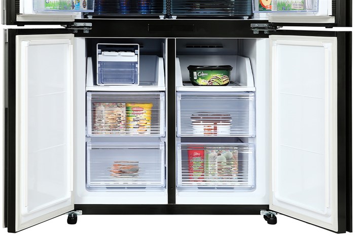 Với thiết kế kiểu Multi Door 4 cánh mang đến thiết kế sang trọng cho không gian. Sản phẩm có những ngăn để thực phẩm riêng, nên tránh thất thoát hơi lạnh hiệu quả. Bề mặt cánh tủ có mặt kim loại chống bám bẩn, an toàn khi dùng.