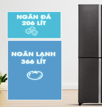 Sharp Inverter 572 lít SJ-FX640V-SL có dung tích ngăn đá là 206 lít và ngăn mát là 366 lít, thoải mái để nhiều loại thực phẩm. Phù hợp với gi đình trên 5 thành viên.