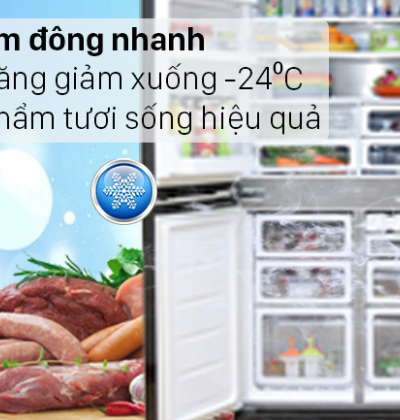 Đặc biệt, tủ lạnh này sẽ giữ thực phẩm tươi sống được tươi ngon do ngăn đông có khả năng giảm xuống -24⁰C nhanh chóng.