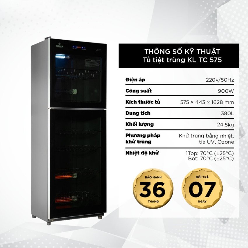 Với hai tầng riêng biệt có thể được sử dụng để khử trùng bằng Ozon và tia cực tím, cũng như khử trùng bằng nhiệt, KL – TC 575 là sản phẩm tuyệt vời để tiết kiệm thời gian, công sức đồng thời đảm bảo thực phẩm của bạn luôn an toàn để đưa lên bàn ăn.