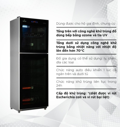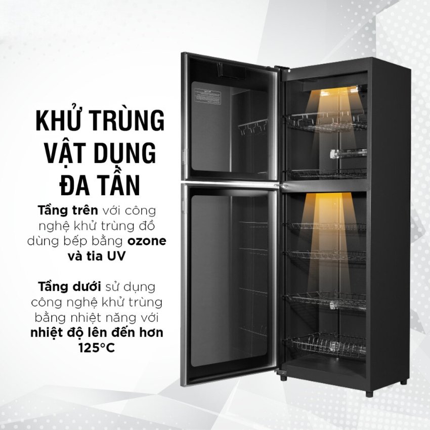 Chức năng điều khiển tự động: Chức năng điều khiển tự động của máy cho phép bạn khử trùng ngăn trên và ngăn dưới cùng một lúc. Điều này giúp bạn vừa tiết kiệm thời gian vừa tiết kiệm công sức.