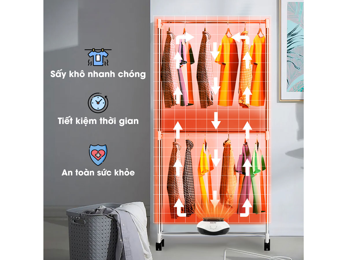 Máy sấy quần áo Kalite KL6880 chính là giải pháp hoàn hảo cho việc làm khô quần áo trong những ngày nồm ẩm.