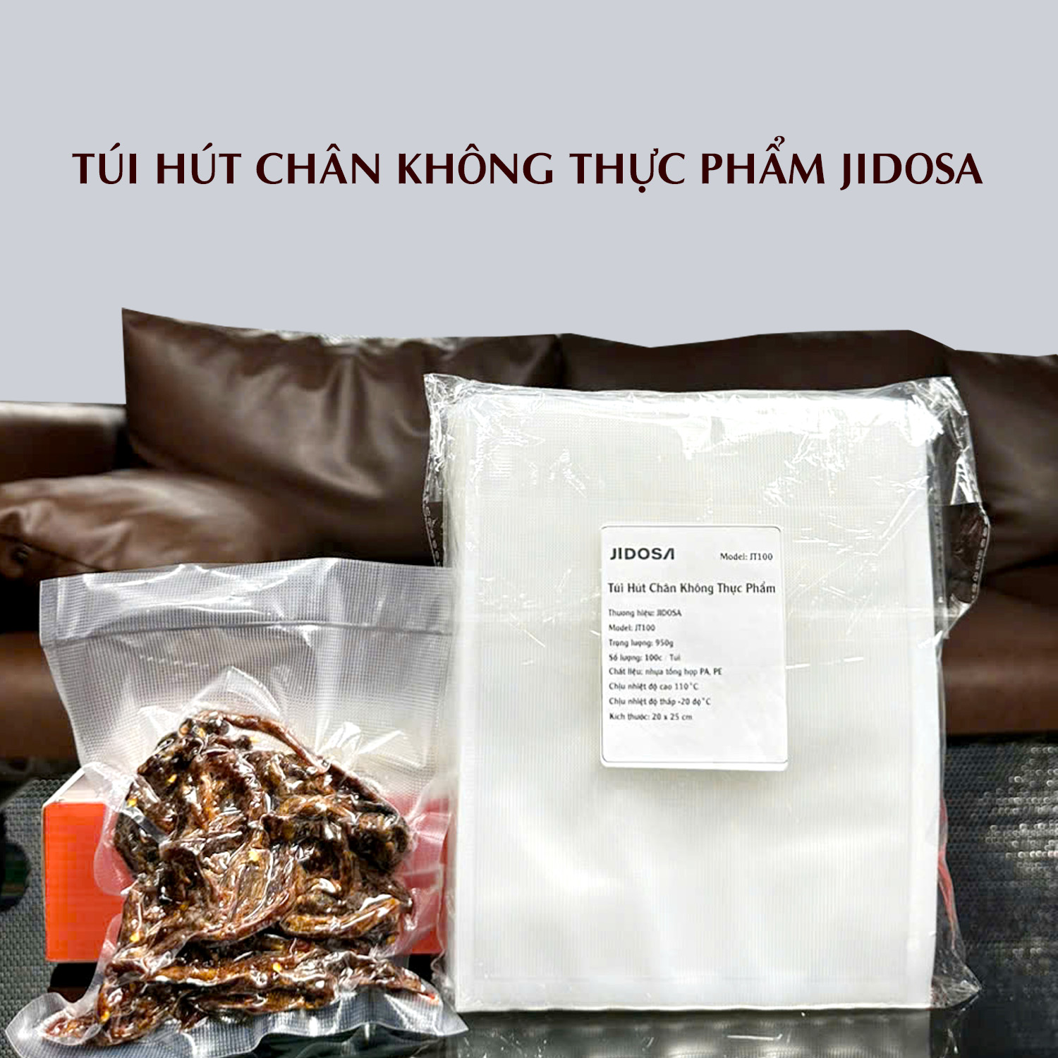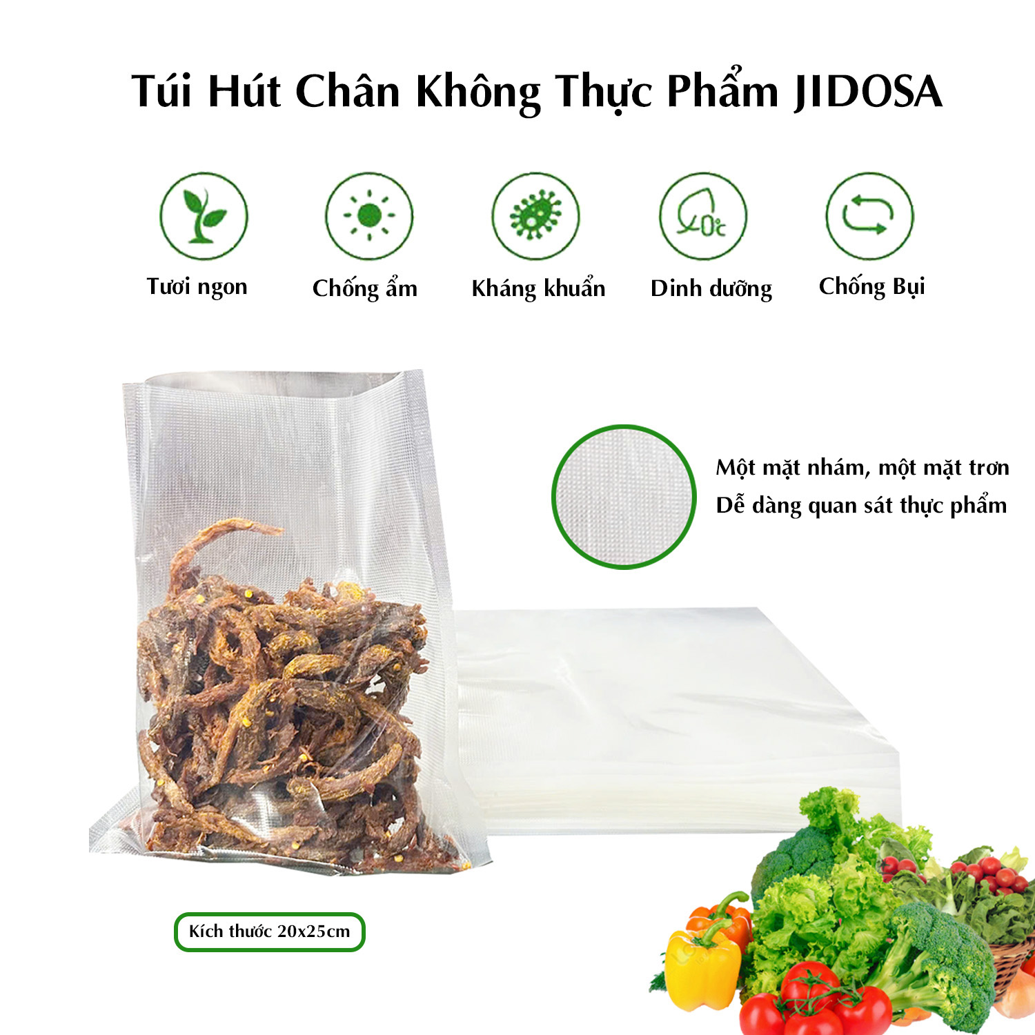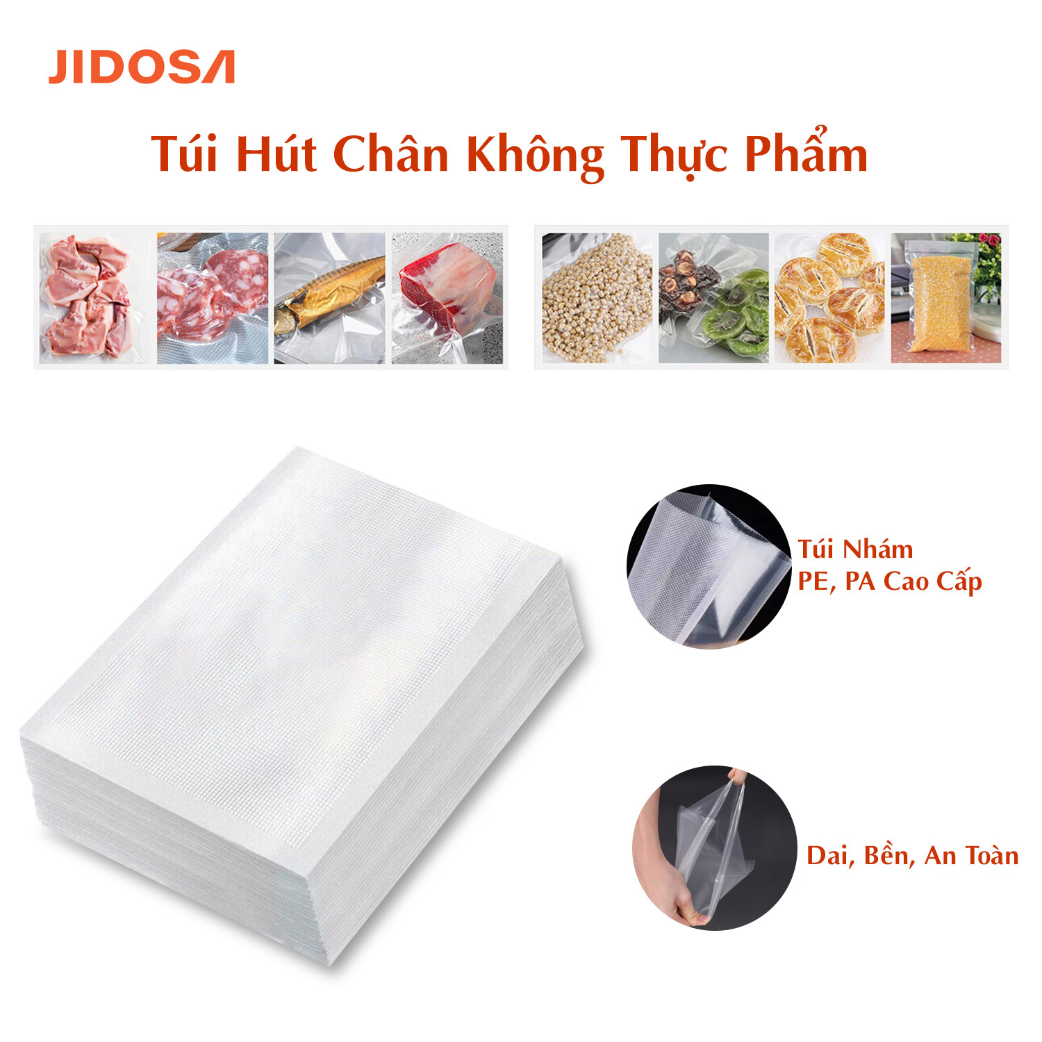 Túi hút chân không 1kg JIDOSA thực phẩm 1 mặt nhám PA PE an toàn sức khỏe dai bền chịu nhiệt tốt