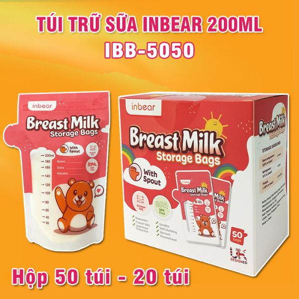 Túi Trữ Sữa Inbear 200ml – Hộp 50 Túi, Hộp 20 Túi, Có Vòi Dễ Đổ Ra, Tiệt Trùng Sạch Sẽ