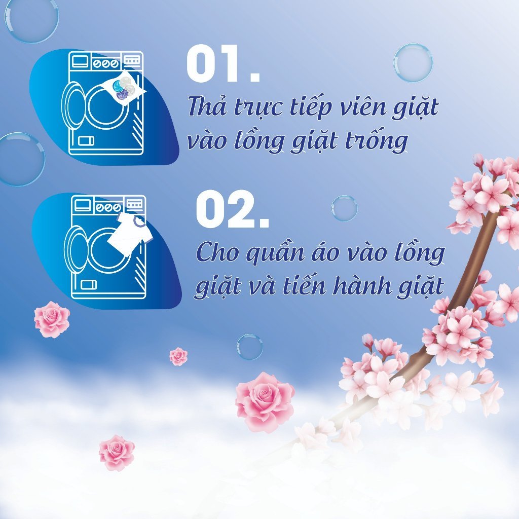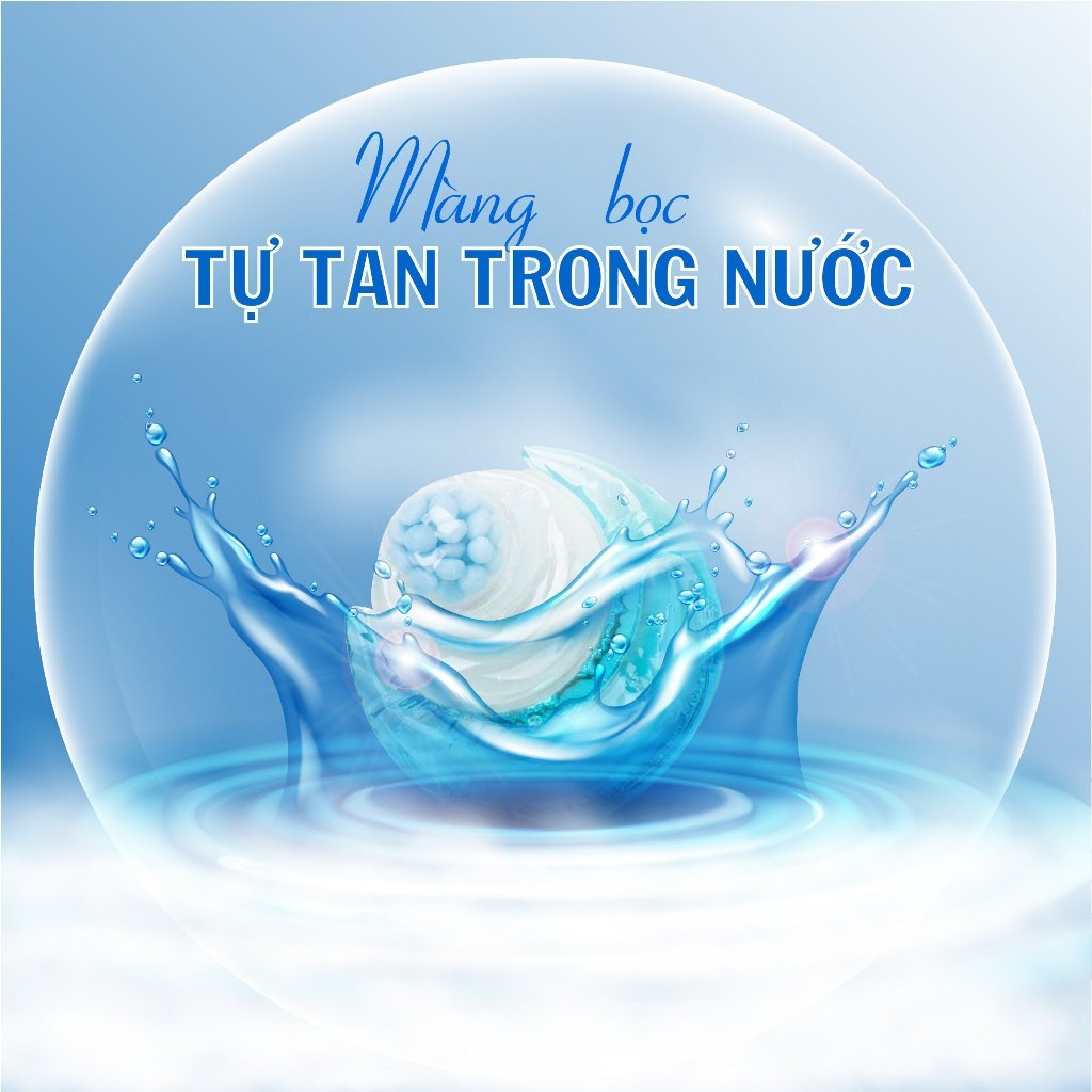 - Bước 2: Cho quần áo vào lồng giặt và tiến hành giặt (Không cần xóa bỏ lớp màng ngoài của viên giặt. Lớp màng này sẽ tự tan trong quá trình giặt)