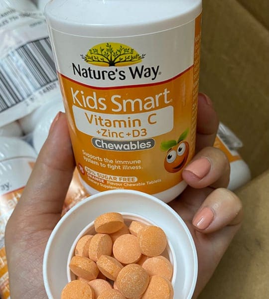 Nature’s Way (Úc), cung cấp Vitamin C (250mg), Kẽm (3mg), và Vitamin D3 (100IU), giúp tăng cường miễn dịch, hỗ trợ xương, mắt, da, và sức khỏe tổng thể cho trẻ từ 2 tuổi.