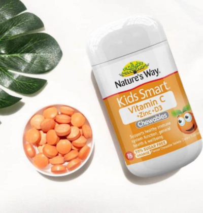 Nature’s Way Kids Smart Vitamin C + Zinc + D3 Chewable Tablets (75 Viên) là thực phẩm bổ sung từ