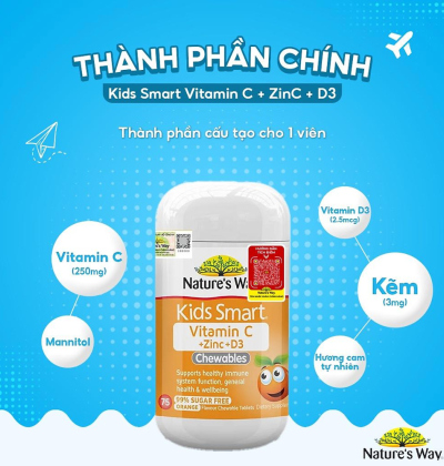 Tên sản phẩm: Nature’s Way Kids Smart Vitamin C + Zinc + D3 Chewable Tablets